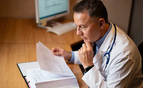 Врач просматривает результаты анализов
